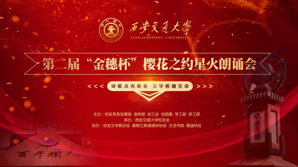 兹定于 2019年5月18日(本周六)19:00在学校科学馆101举行回馈母校最新第二届“金穗杯”樱花之约星火朗诵会。届时,将有来自海内外的20名曾经获得过当年学校“樱花”征文奖和“星火”朗诵奖的校友专程回校参加活动,与师生同台,共抒母校情怀。