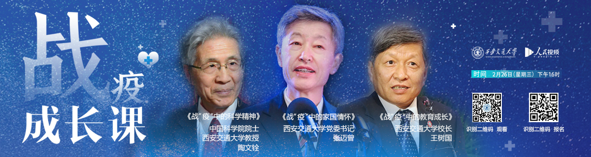 全国广大青少年受疫情影响,正面临着无法正常开学、不能以常规方式进行学习。为了能够让他们静下心来,面对疫情,共克时艰、爱国奋斗、不负韶华、立志成才,学校与人民视频、陕西广电网络、陕西网、腾讯新闻、企鹅新媒体学院等媒体合作,特邀请中国科学院院士、能动学院陶文铨教授,党委书记张迈曾教授,校长王树国教授,与全国青少年同上一堂战“疫”成长课。课程将于2月26日(周三)下午16:00-17:00播出。