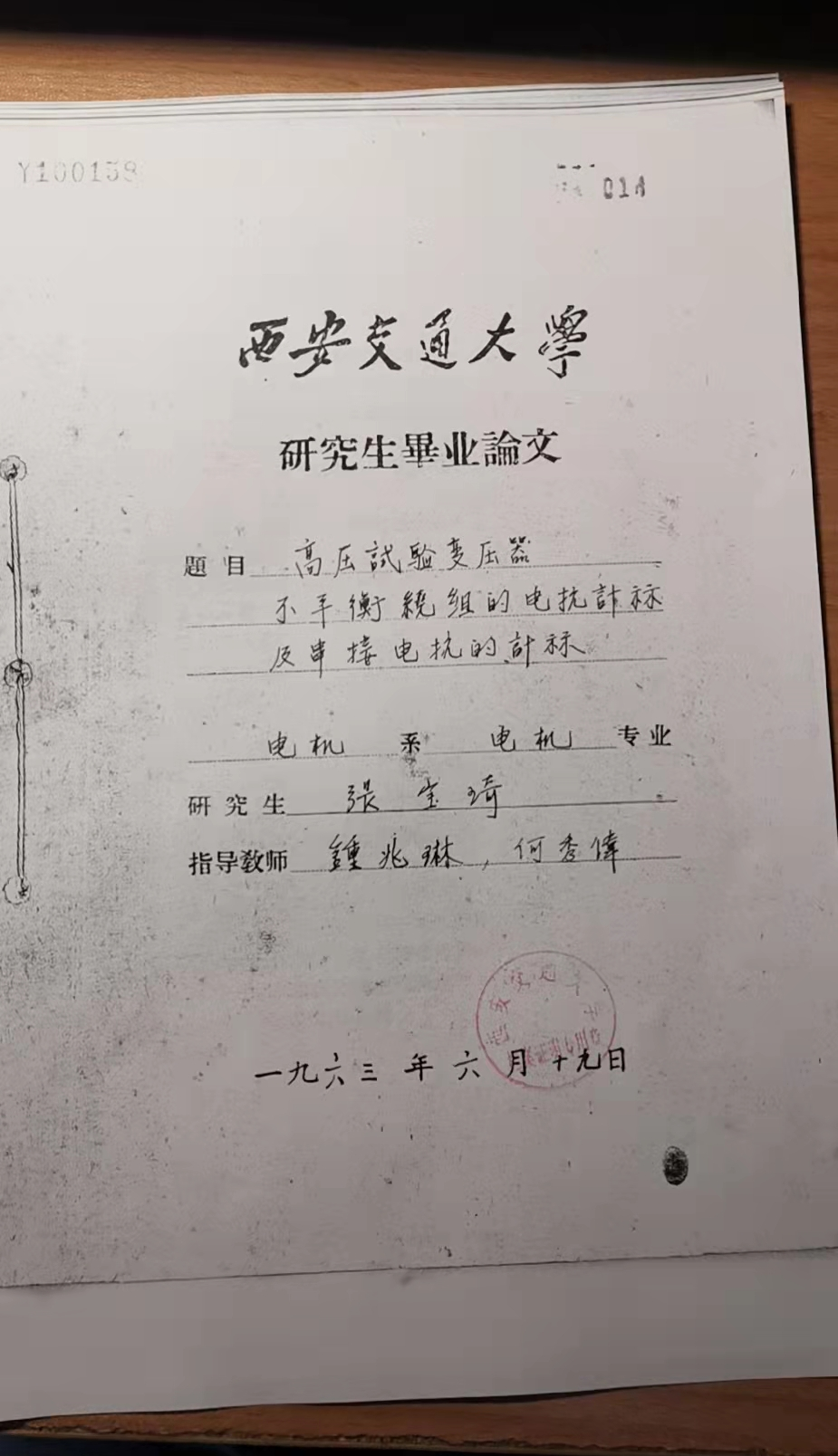 图四 张宝琦校友在钟兆琳老先生指导下完成的硕士学位论文(校档案馆提供)