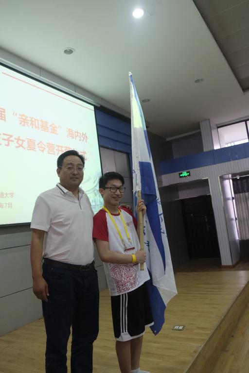 西安交大亲和基金秘书长魏长青校友代表亲和基金向本届营员授予营旗,并在致辞中介绍了亲和基金设立的目的和用途。
