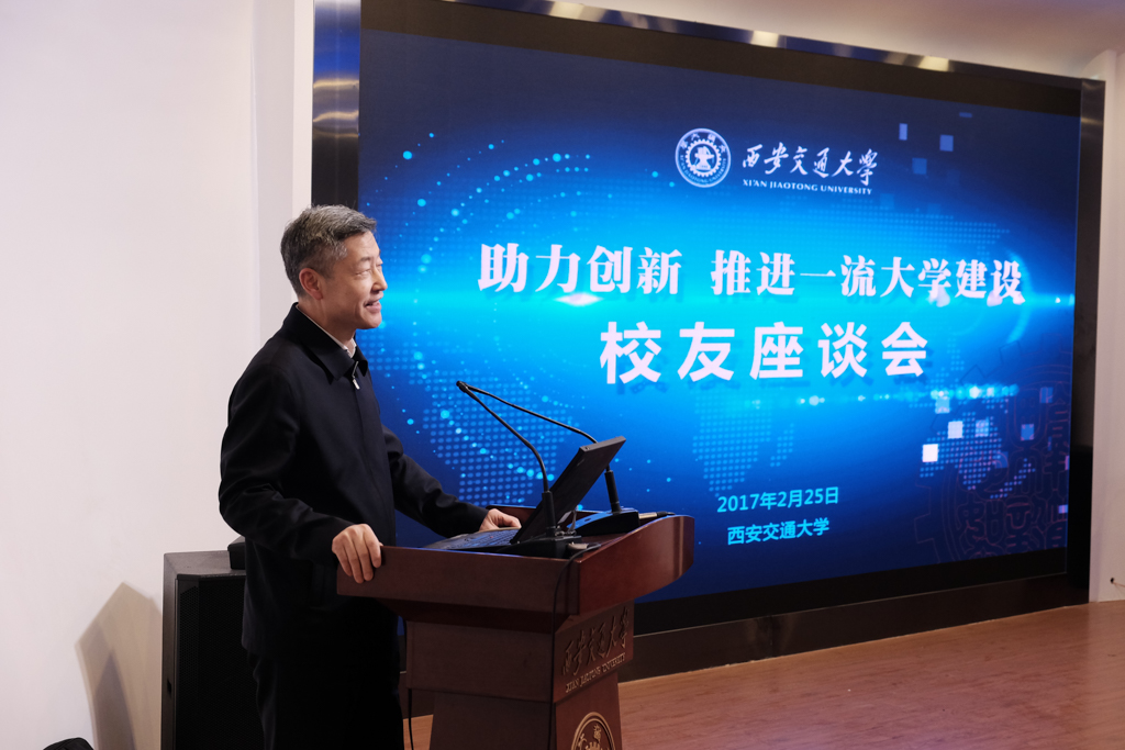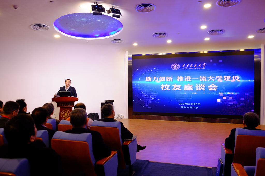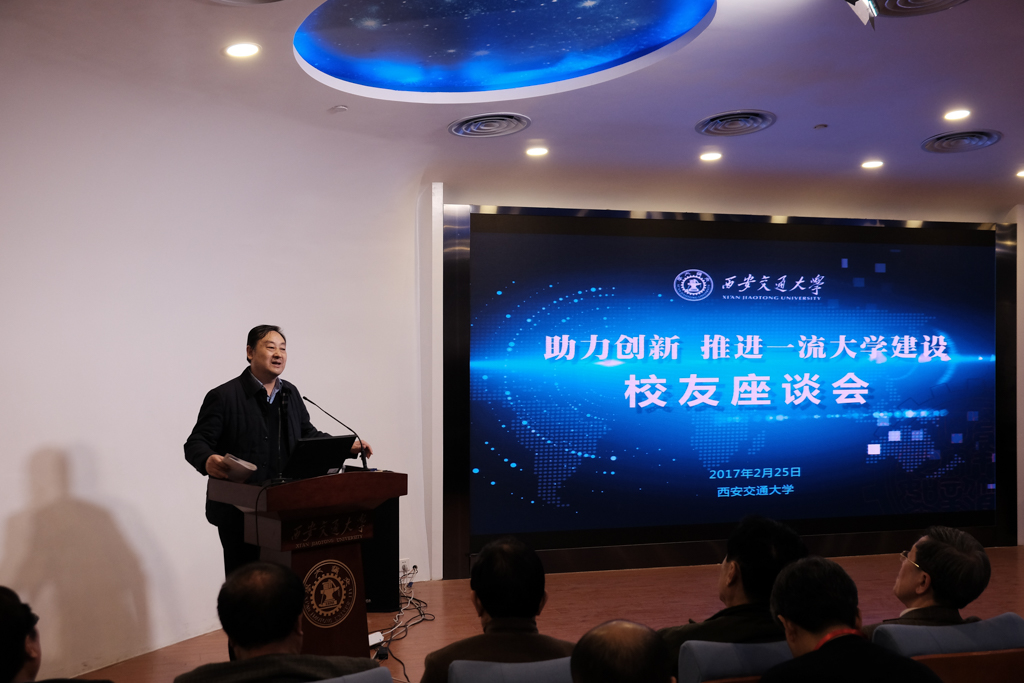 2017年2月25日,“助力创新,推进一流大学建设”校友座谈会在交大钱学森图书馆星空报告厅举行。来自各地企业界的校友代表和海内外43个地区(行业)校友会负责人等120多位校友齐聚母校,就创新发展、中国西部科技创新港建设以及“双一流”建设进行了深入讨论交流。回馈母校最新党委书记张迈曾、校长王树国、党委副书记宫辉、副校长王铁军参加了座谈会。座谈会由席光副校长主持。