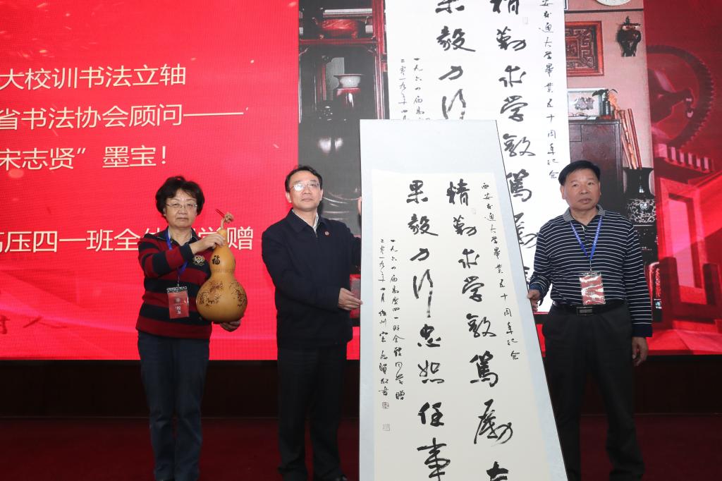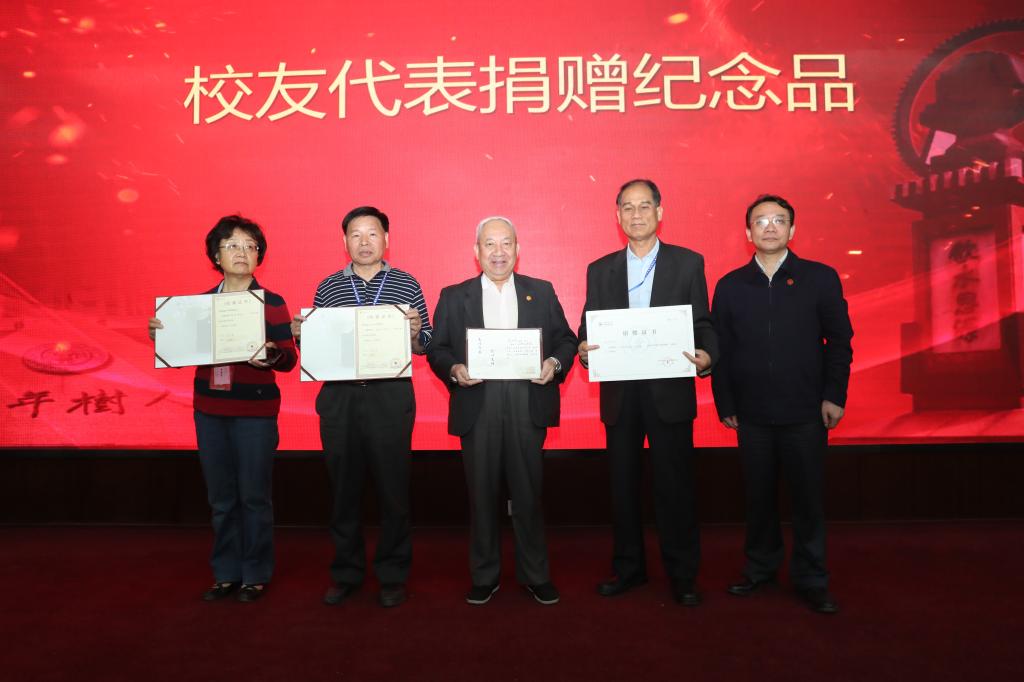 1969届高压41班校友感谢母校培养,向学校捐赠了工艺品“交大校训书法立轴长卷”和“四季平安烙画葫芦”。席光副校长还为参加“西迁博物馆建设”捐赠项目的校友代表颁发了证书。