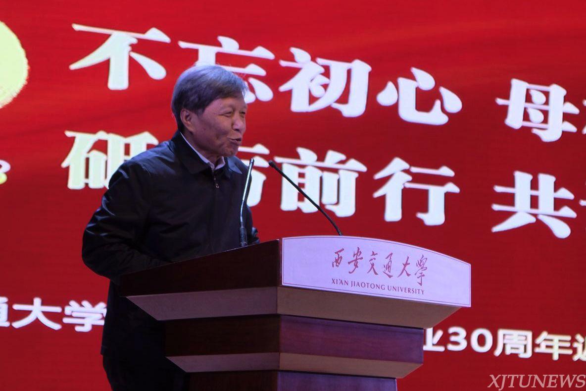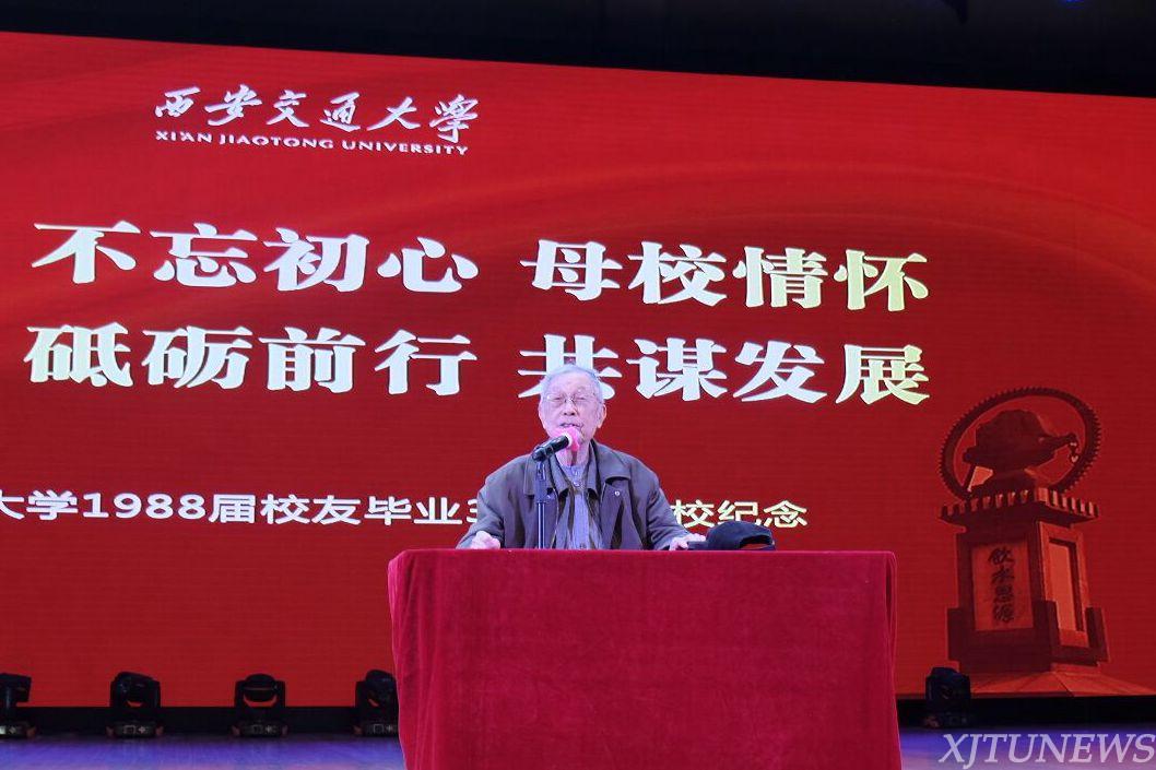 校友代表们纷纷向母校、向老师的培养表示感谢,向同学表达对同窗之情的怀念,用工作成就展现交大人的贡献与担当。哈尔滨锅炉厂有限责任公司董事长、党委书记、1988届锅炉42班樊险峰校友说,感谢母校教会学子们责任和担当,给予学子们前行和勇敢的力量,校友们会一直关注母校发展,为学校的发展献计尽力。甘肃行政学院党委委员、副院长、1988届物资经济系何元锋校友说,感恩母校回馈母校最新张开怀抱拥抱原陕西财经学院的游子们,校友们感到了心灵情感的回归,用“财院情”拥抱“交大爱”。西安教育文化数码有限责任公司董事长、1988届半导体41班桂超校友感恩母校培养了学子们勇于探索、敢于担当的精神,祝愿校友们永远守住赤子之心。