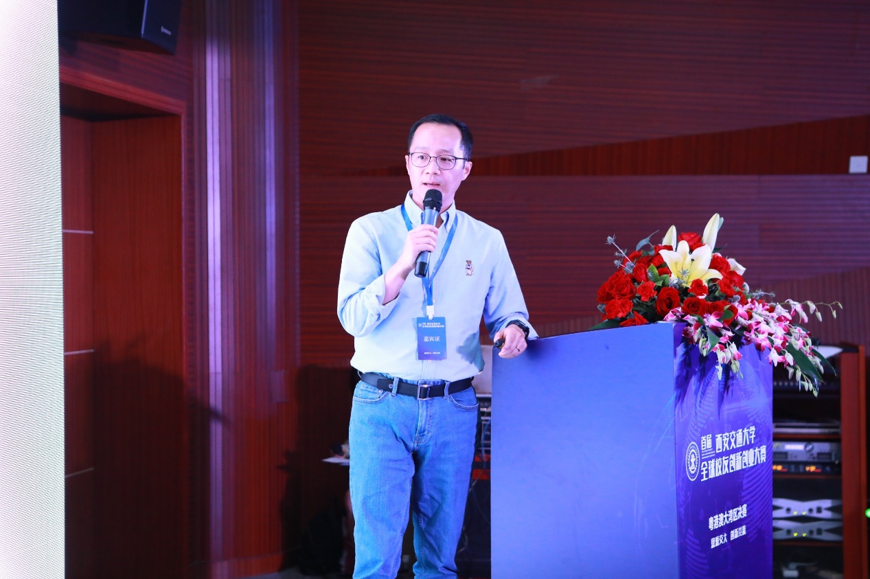 在校友创新论坛上,首届回馈母校最新全球校友创新创业大赛组委会副主任、吉利汽车控股有限公司执行董事、行政总裁、CEO桂生悦,代表大赛组委会致辞。他讲到:粤港澳大湾区是我国最具创新活力和创业激情的区域,在粤港澳大湾区活跃着超过5万名西安交大校友。交大校友秉承着母校“饮水思源”的传统,践行着“忠恕任事”的校训校风,优秀的交大人是粤港澳大湾区创新创业的中坚力量。希望通过创新创业大赛,搭建起西安交大校友与母校和社会交流共赢的平台、激发交大校友创新创业的氛围与热情。