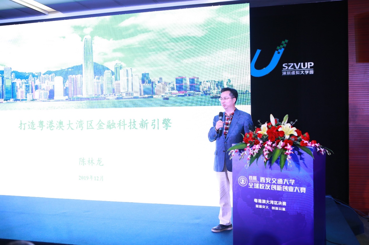 中国光大银行香港分行行长陈林龙博士就《打造粤港澳大湾区金融科技新引擎》进行专题分享。他指出,粤港澳大湾区具备发展金融科技的先天优势,金融科技的创新对实体经济的助力和推动非常重要,希望务实的交大创业人能够借助金融科技的优势更快更好发展。
