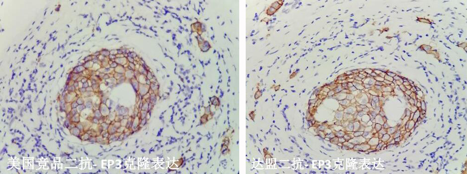 Ø 对照评估结果表明,达盟二抗系统染色强度,定位准确度,背景控制等方面不弱于美国竞品;