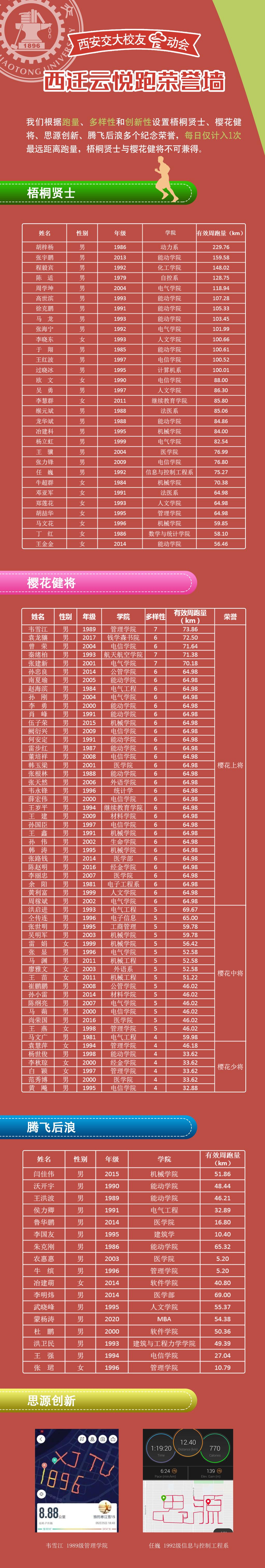 一八九六饮水思源,运动赋能超越自我。人若温和坚定,余生皆是欢喜,如果不能打破心的禁锢,即使给了整个天空,也找不到飞翔的感觉。这次参加“西迁云悦跑”活动,我逐一解锁5.20、6.4、8.88、12.4、13.14、18.96六个赛段常规距离,科学运动、健康锻炼,战胜疫情、放飞梦想,用奔跑的足迹向西迁前辈致敬,在蹄疾步稳、砥砺奋进中传承西迁精神,为母校蓬勃发展助威喝彩!祝愿交大的明天越来越美好!