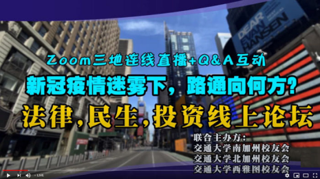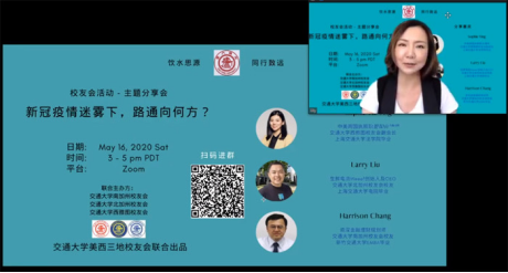 5月16日下午3点,交通大学南加州校友会、北加州校友会及西雅图校友会联合举办了主题为“新冠疫情迷雾下,路通向何方?”的线上论坛,参加人数400余人。
