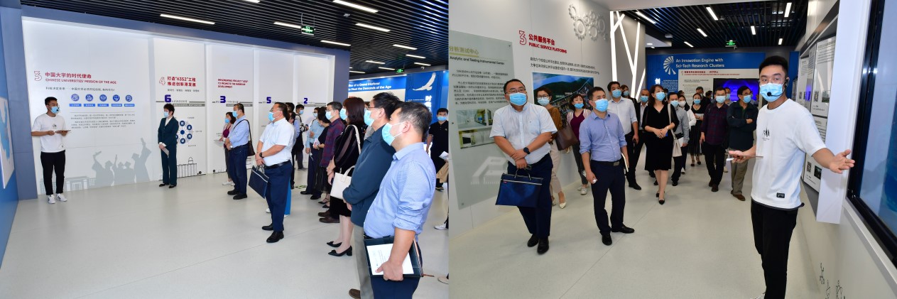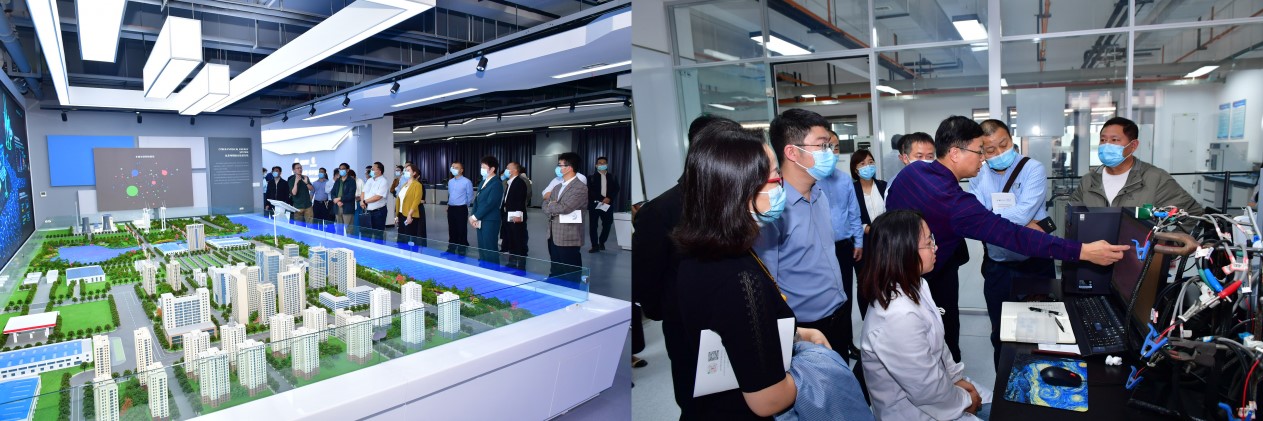 座谈会前,与会人员参观调研了创新港数字展厅、电子信息科学研究院与校友企业共建联合实验平台。