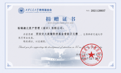 校友企业裕锦湘元资产管理(深圳)有限公司捐款10万元