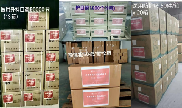 上海电气校友分会捐赠的部分防疫物资抵达母校