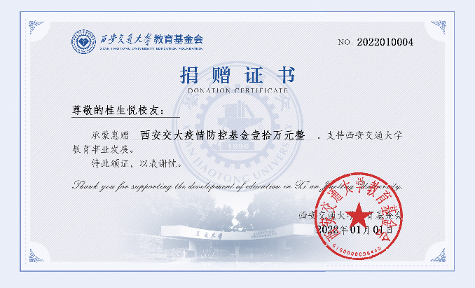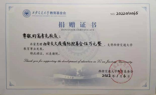 大疫无情,人间有爱。广大校友心系母校,与母校守望相助,同舟共济,用实际行动诠释了与母校同心协力、战胜困难的责任与担当。如今,古城解封,校园平安,许多学生已返乡团圆,更让全校师生不会忘记校友们在危急关头鼎力驰援母校的大爱善举,也激励我们交大人携手同心,一起向未来。