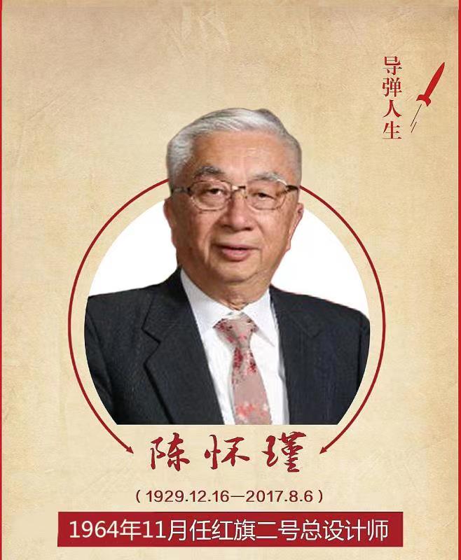 陈怀瑾,生于1929年12月,上海市人。火箭技术专家,红旗二号总设计师。1950年毕业于交通大学电机系。历任航天工业部第二研究院总体设计部副主任、副院长,航天工业部总工程师、仿真工程总设计师,中国宇航学会第一、二届理事。