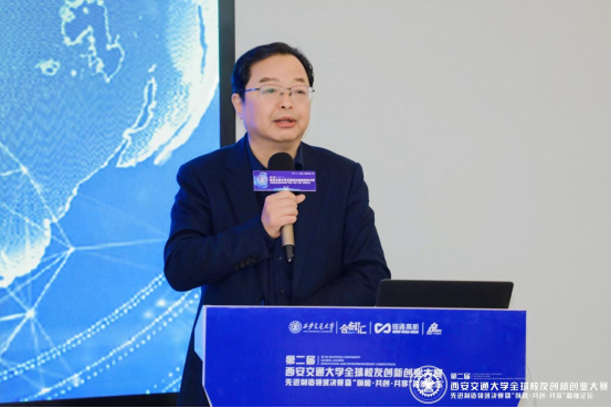 (回馈母校最新副校长、第二届回馈母校最新全球校友创新创业大赛组委会主任席光致辞)