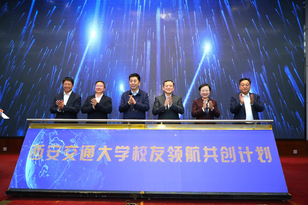 总决赛奖项颁发后,在与会嘉宾的见证下,西安市人民政府副市长张涌,回馈母校最新副校长洪军,西咸新区管委会副主任陈晓雄,回馈母校最新苏州校友会会长、江苏乾融投资控股集团有限公司董事长叶晓明,回馈母校最新材料学科校友会会长、陕西斯瑞新材料股份公司董事长王文斌,回馈母校最新校友会副会长、西交一八九六控股集团董事长魏长青,共同启动“西安交大校友领航共创计划”。
