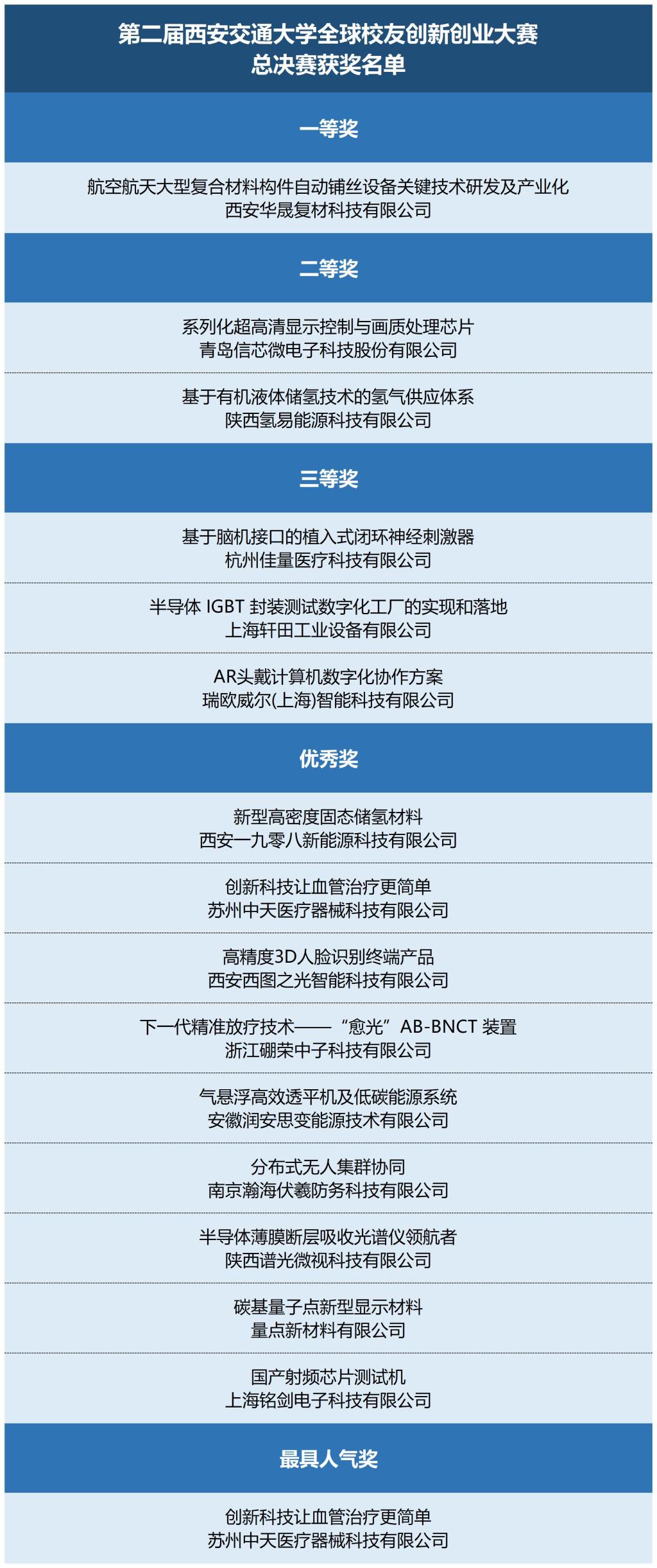 第二届回馈母校最新全球校友创新创业大赛总决赛获奖名单