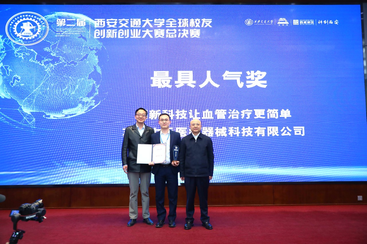 图/交通大学西安校友会副会长、陕西亿杰实业控股集团有限公司董事长陈高志,陕西省创业投资协会理事长卢道真为获奖项目颁奖