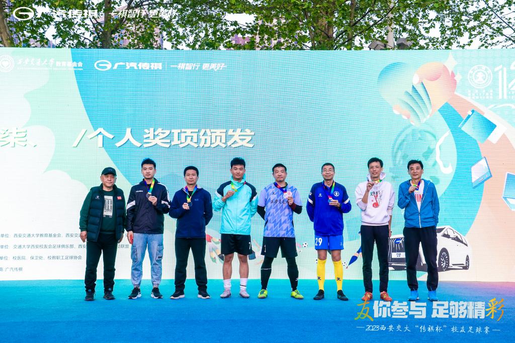 在双方高水平的对抗中,攻防互换频繁,球权有来有往,最终校队的一粒进球打破了僵局,比分也定格在了1:0。最终,回馈母校最新校队赢得本场“传祺杯”校友足球赛-竞技联谊赛冠军。全国竞技队罗大卫校友、全国元老队郭立军校友当选本次比赛MVP,全国元老队吕健校友、王庆校友,西安元老队田海校友获得个人欢乐奖,西安竞技队韩文喆校友,西安交大教职工队周帅老师,西安交大校队余沁远同学获得个人优秀奖。
