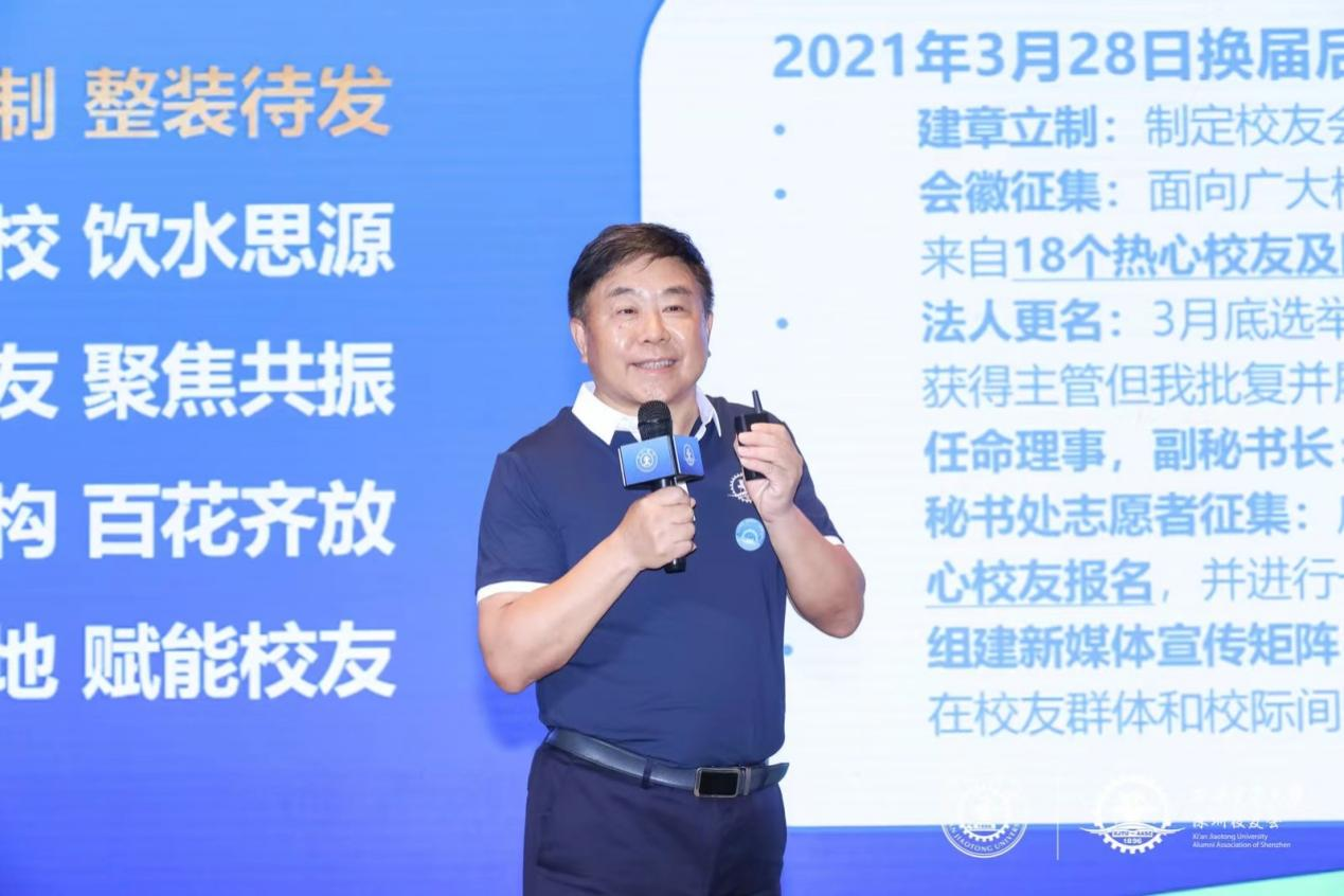 深圳市回馈母校最新校友会会长、1981级校友、深圳明阳电路科技股份有限公司董事长张佩珂以“饮水思源、追梦鹏城、为世界之光”为题,围绕“服务校友、服务母校、服务社会” 的校友工作宗旨汇报了深圳校友会工作,并邀请深圳校友会兴趣组织和品牌活动的校友代表发言。张佩珂表示校友会将继续凝聚校友力量、整合各方资源、深化内外联络、搭建交流平台,为母校发展贡献力量。