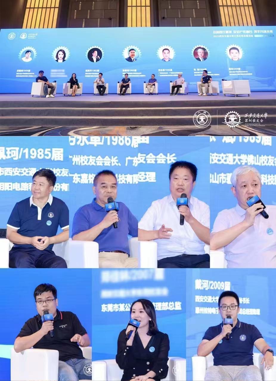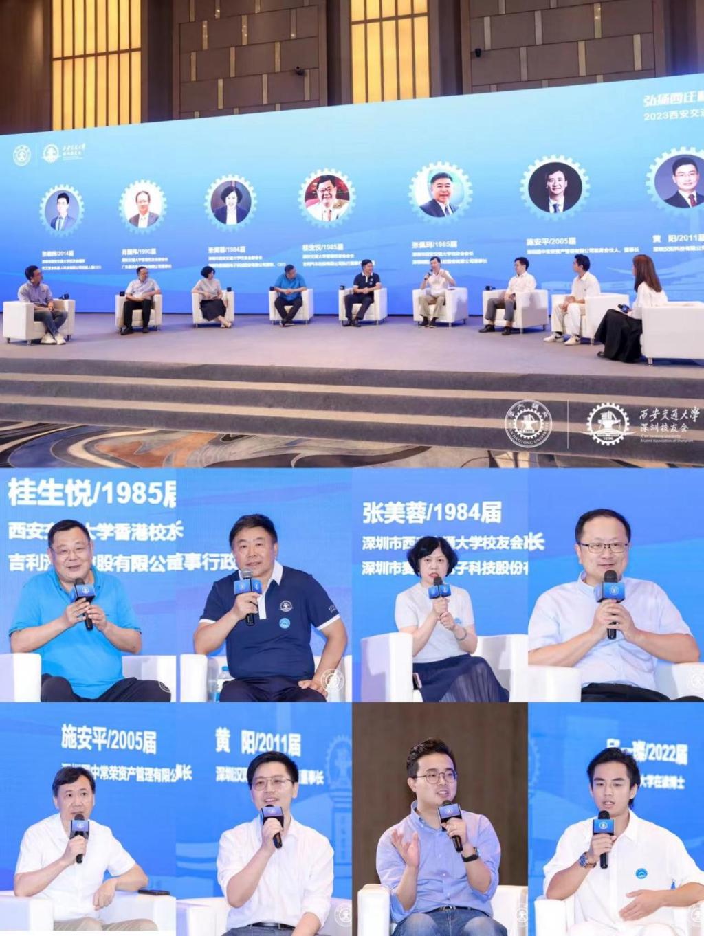 在圆桌论坛环节,圆桌论坛一以深度融合服务“经济发展 协同育人”为主题,校友吉利汽车控股有限公司执行董事行政总裁桂生悦、深圳明阳电路科技有限公司董事长张佩珂、深圳市麦捷微电子科技股份有限公司董事兼CEO张美蓉、深圳国中常荣资产管理有限公司首席合伙人董事长施安平、广东晶科电子股份有限公司董事长肖国伟、深圳汉阳科技有限公司董事长黄阳、优艾智合机器人科技有限公司创始人兼CEO张朝辉、香港科技大学在读博士邱一璨分别从企业家、投资家、创业者等不同视角,围绕产学研资深度融合,服务国家、支持企业发展、校企协同育人畅谈感想、建言献策。