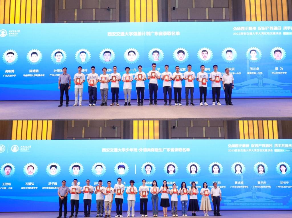 会上,王树国为学校在广东录取2023级强基计划新生少年班新生、外语类保送生颁发了录取通知书。