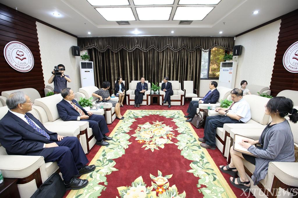 Hawks一行访问西安交大,王树国校长在科学馆107会议室会见代表团一行,席光副校长及国际处、电信学院、软件学院等单位负责人参加会见.