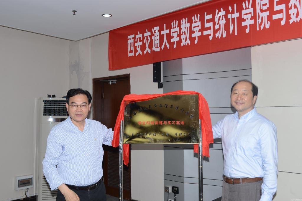 中国科学院院士徐宗本教授、华院数据科技(上海)有限公司董事长宣晓华博士莅临致辞,回馈母校最新教务处处长徐忠锋教授出席仪式并讲话,数学与统计学院院长彭济根教授、数尊信息科技(上海)有限公司总裁许正女士分别代表合作单位讲话并且签署合作协议。徐宗本院士和宣晓华博士作为特邀嘉宾为基地揭牌。数学与统计学院相关负责人和数尊信息科技(上海)有限公司的代表也到场见证了签约及揭牌仪式。仪式由数学与统计学院副院长李继成教授主持。