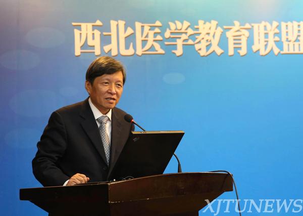 西安交大王树国校长在致辞中指出西北医学联盟的成立符合“一带一路”的时代背景,他说:“我们既要学习先进国家的成功经验,也要同丝绸之路沿线的国家地区、兄弟院校携手共进,共同发展,这是顺应历史的大国胸怀,也是体现救人危难的医学本质。”王校长表示愿意开放西安交大的教育资源,以百度为平台,积极促进医疗大数据的发展,使大城市优质资源和基层进行有效的连接和共享。他还指出,西安交大将牵头成立的丝路大学联盟不仅可以使丝路沿线国家和中国共同发展,更加可以快速提高医疗水平和队伍素质。最后,王校长表示,全力支持联盟的发展,使其不断释放社会价值,使西北的医疗事业延伸到丝路经济带。