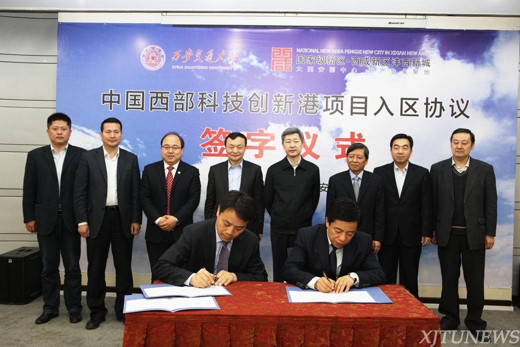 4月9日是一个值得纪念的日子。被誉为西安交大“二次创业”的中国西部科技创新港——智慧学镇项目正式签约入驻西咸新区沣西新城。西安交大党委书记张迈曾,校长王树国,西咸新区党工委书记、管委会常务副主任王军等共同见证了这一历史性时刻。