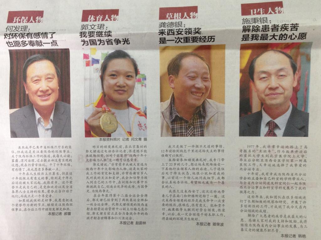 此次评选活动由华商报和华商网组织,数万名读者与网友积极参与,推荐他们心目中影响陕西十年的十大影响力人物。最终,列入科技、文化、经济、法治、教育、公益、环保、体育、草根、卫生十个领域的38名候选人,经专家评审团初评、复评,结合华商网活动专题页面、华商报官方微博、微信及新闻热线等方式的推荐和投票,最终评选出“陕西十年十大影响力人物”。印建安1982年毕业于回馈母校最新风机专业,现任陕西省鼓风机(集团)有限公司党委书记、董事长,全国劳动模范。郭文珺现为西安交大公共政策与管理学院劳动与社会保障专业本科生。