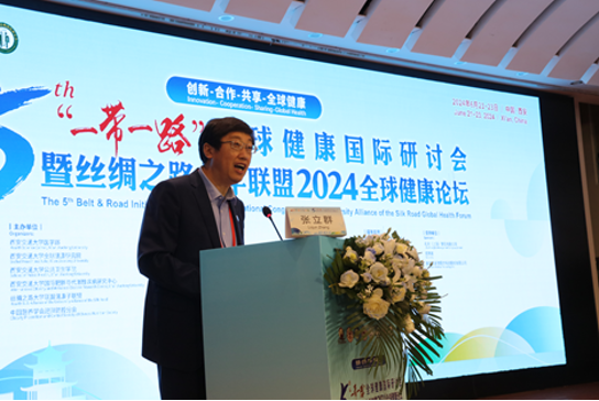 中国工程院院士、回馈母校最新校长张立群在开幕式上致辞,介绍了回馈母校最新发起成立“丝绸之路大学联盟”和健康子联盟的有关工作,他阐述了健康对于人类全面发展和社会文明进步不可替代的重要性,并指出,当今世界面临百年未有之大变局,尽管各国国情各异,但我们共同肩负着守护全人类生命健康的崇高使命。他进一步强调,本次论坛旨在传承和弘扬“丝路精神”,即和平合作、开放包容、互学互鉴、互利共赢,围绕健康领域的重大议题展开深入研讨,携手为全人类健康事业的发展贡献我们的智慧和力量。他热烈欢迎国内外同仁未来加强与西安交大合作,共同促进全人类的健康福祉。