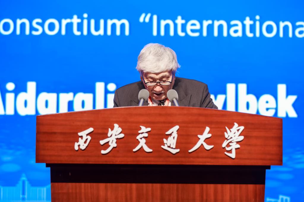 “丝绸之路大学联盟”代表、阿沙尔贝克•艾依达拉耶夫在致辞中表示,面对日益激烈的人才与技术市场竞争,高校必须革新教学内容与方法,制定前瞻性的创新发展战略,以创造独特的竞争优势。吉尔吉斯斯坦国际大学在欧盟项目框架内开发实施了中亚高等教育区学分评级系统和能力标准框架,并设置新课程,探索大学4.0模式。西安交大发起的“丝绸之路大学联盟”是大学转型的重要一步,希望未来与盟校携手共进,培养更多具有国际视野和创新能力的优秀人才,应对全球性挑战,共创美好未来。