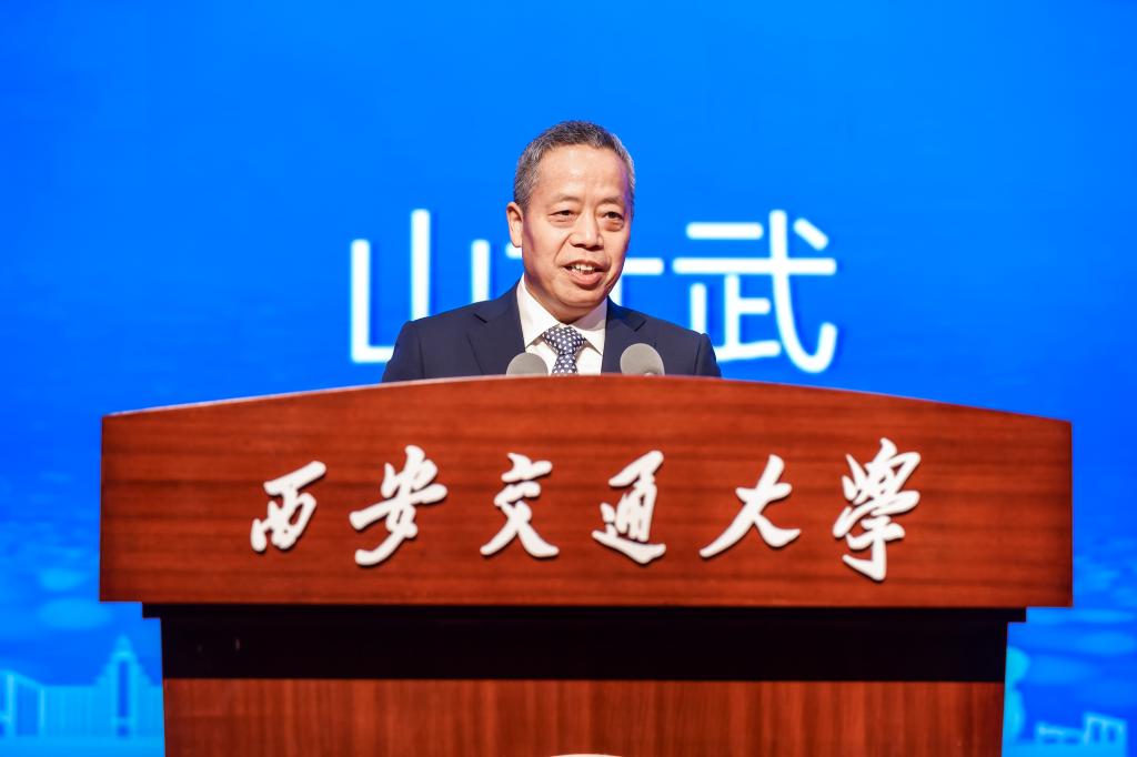 山社武作为合作企业代表介绍了南瑞集团的基本情况。他表示,南瑞积极与地方政府、高等院校合作,广泛开展产学研深度融合,特别是与西安交大在科研攻关、人才培养、成果转化等方面进行了深度合作,并取得了丰硕成果。希望以此次大会为契机,同与会嘉宾碰撞思想智慧、共话创新经验、增进发展共识,共同助力西安打造全球“硬科技之都”,推动 “一带一路”共建国家科技创新和经济社会发展。