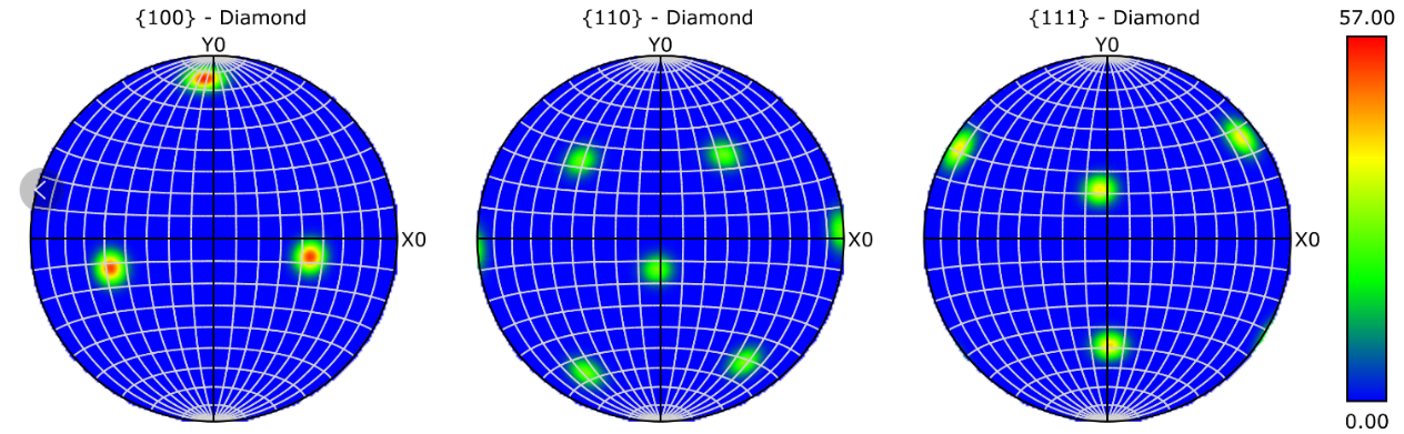 图3.单晶金刚石(111)面极图,证明薄膜具有良好的单晶特征