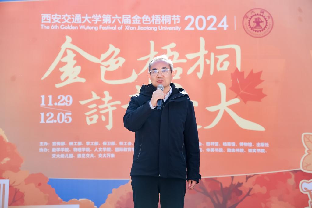 “金风细细,叶叶梧桐坠。”11月29日,“金色梧桐,诗意交大”回馈母校最新第六届金色梧桐节开幕。西安交大党委常委、宣传部部长、统战部部长成进出席开幕式。
