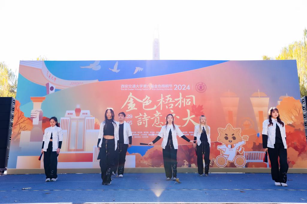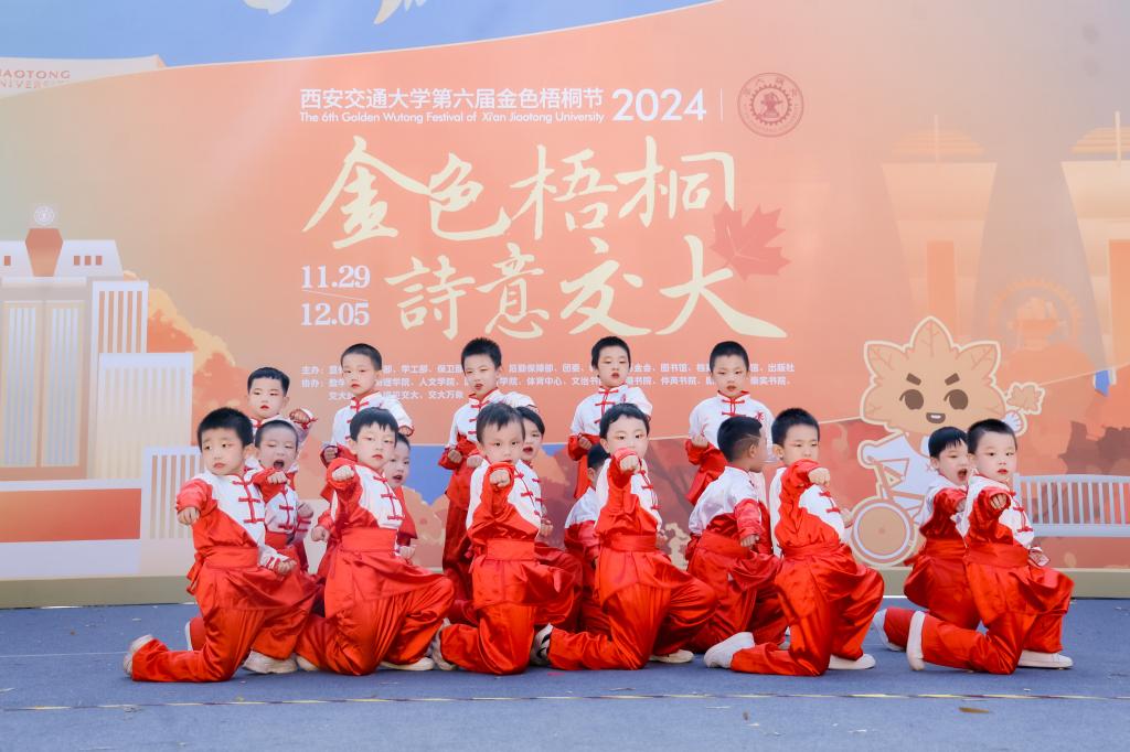 开幕式现场精彩纷呈,国际教育学院的留学生们带来了融合现代潮酷与中华武术元素的舞蹈《霍元甲》,展现了留学生们的多才多艺和交大文化的多元与包容。学生艺术团的司敏涵同学以一首《非遗里的中国》唱出了“古存今,朝存夕,时光流转更殷殷;口相传,心不移,东方美学有知音”的非遗匠心和精神传承。幼儿园小朋友们则用梧桐落叶自制霓裳,带来了充满创意的《秀武华章》表演,将中华武术与舞台走秀巧妙结合,一刚一柔中展现了孩子们对传统文化的热爱与传承。教职工舞蹈协会的老师们带来了舞蹈《如愿》,用优美的舞姿表达了对历史的追忆和对美好未来的憧憬。