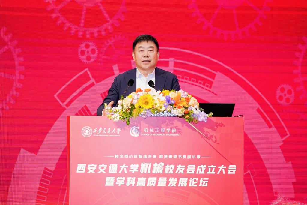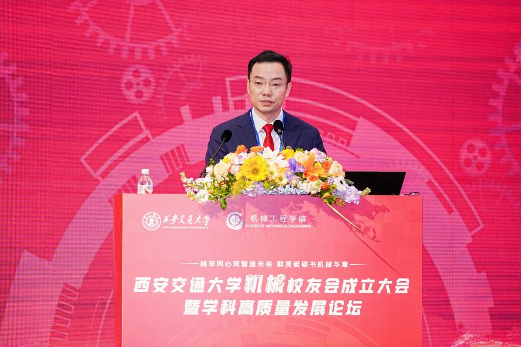 单智伟代表学校致辞。他表示,校友会的成立将进一步团结凝聚广大机械校友,为全球的交大机械人搭建联络情感、交流合作和爱校荣校的平台,共同助力学院和学科的高质量发展。他希望校友会不仅要做好服务校友的“贴心人”,联系校友的“连心桥”,更要充分挖掘和发挥资源优势,组织广大校友探索深度参与产教融合的新模式,助力校友与母校双向赋能,共创辉煌。