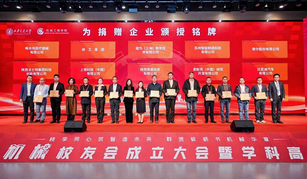 近年来,一大批企业、社会团体和爱心人士在机械学院设立了奖学金和奖教金,有力了支持了学院的人才培养。校教育基金会秘书长邢晓强、机械工程学院副院长王永泉共同为上银科技(中国)有限公司、恩斯克(中国)研究开发有限公司、比亚迪汽车有限公司、潍柴动力股份有限公司、陕西法士特集团科技创新有限公司、歌尔股份有限公司、陕西荣威投资有限公司、苏州智能制造科技有限公司、遨为(上海)数字技术有限公司、深圳亚泰光电技术有限公司、西安沃祥航空科技有限公司、上海轩田智能科技股份有限公司、徐工集团、长城汽车股份有限公司、啄木鸟医疗器械有限公司等15家设立奖学金和学生活动专项基金的企业代表颁授捐赠铭牌。