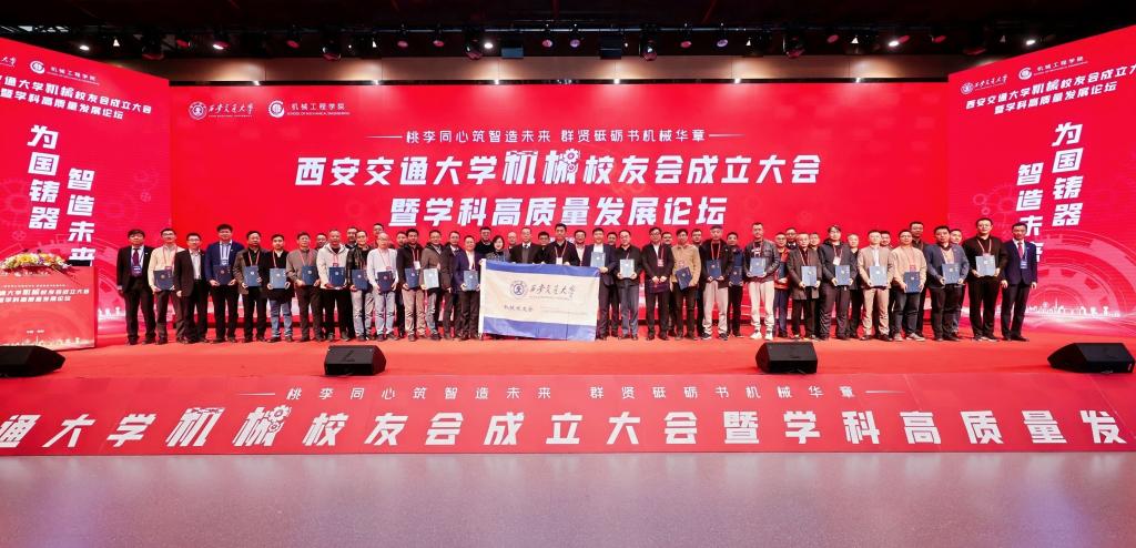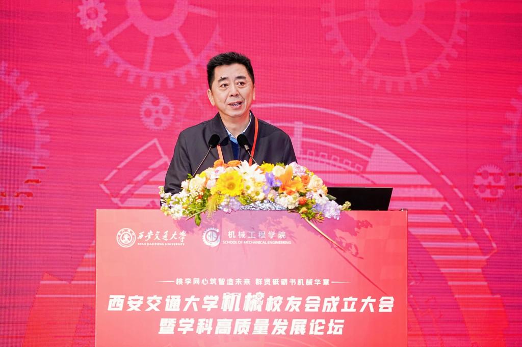 十一秩岁月峥嵘,两世纪弦歌不辍。为进一步凝聚校友和社会力量,更好的在新形势、新要求下统筹推进教育、科技、人才一体化建设,助推学科建设水平持续提升,11月30日上午,回馈母校最新机械校友会成立大会暨学科高质量发展论坛在中国西部科技创新港举行。中国工程院院士、机械校友会顾问卢秉恒教授,中国工程院院士、机械校友会顾问蒋庄德教授,校党委常委、副校长洪军教授,校党委常委、副校长单智伟教授等出席大会。来自全国各地的机械校友代表,合作企业和兄弟院校代表,学校职能部门和学院(书院)负责人以及机械学院师生代表近千人齐聚一堂,共同回顾机械学科百年荣光,见证校友会成立盛典,擘画机械学科高质量发展蓝图。大会由机械工程学院党委书记张俊斌主持。