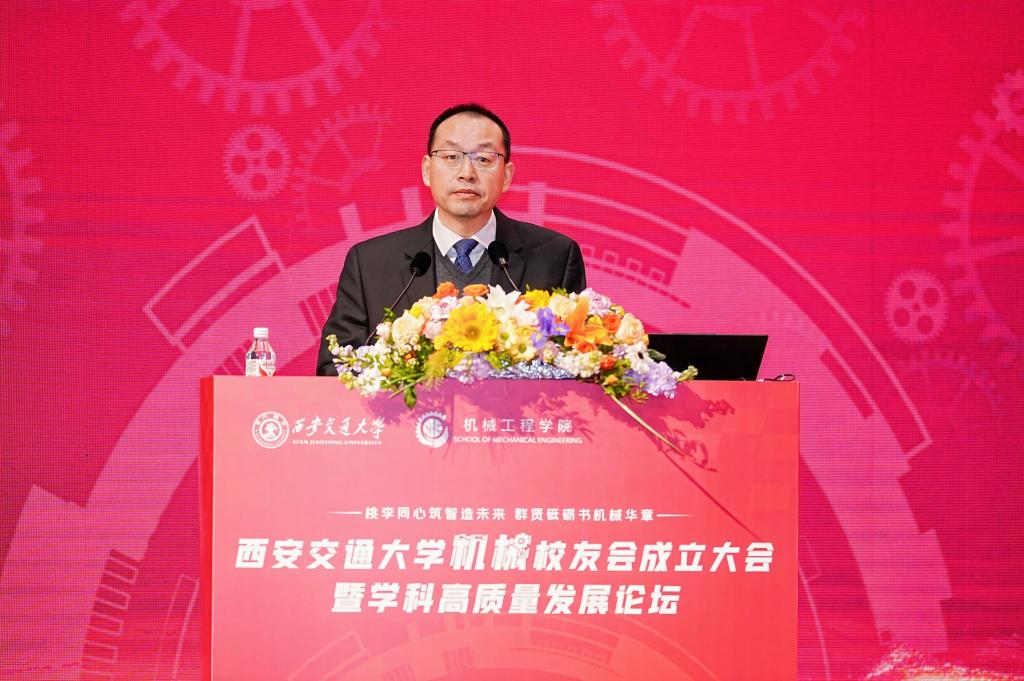 浙江大学机械工程学院常务副院长徐兵教授代表兄弟院校对回馈母校最新机械校友会的成立表示祝贺。他表示,西安交大机械学科历史悠久、实力雄厚、人才辈出,在国内外具有很高的声誉和学科影响力,希望浙江大学和西安交大两校的机械校友会能够延续两个学院兄弟情谊,在多个方面开展更加深入的交流合作,为两校机械学科发展贡献校友力量。