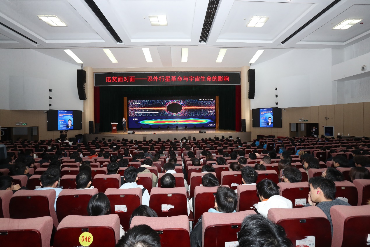 迪迪埃·奎洛兹教授分享了研究团队在系外行星探测中的研究方法和研究成果,对宇宙中生命多样性的话题进行了哲学和科学探讨,激发了广大师生对地外生命可能性的科学思考。会场座无虚席,现场气氛热烈,师生们踊跃提问、交流互动,迪迪埃·奎洛兹教授耐心细致解答,热忱鼓励师生善于观察和思考,勇于探索未知世界的奥秘。
