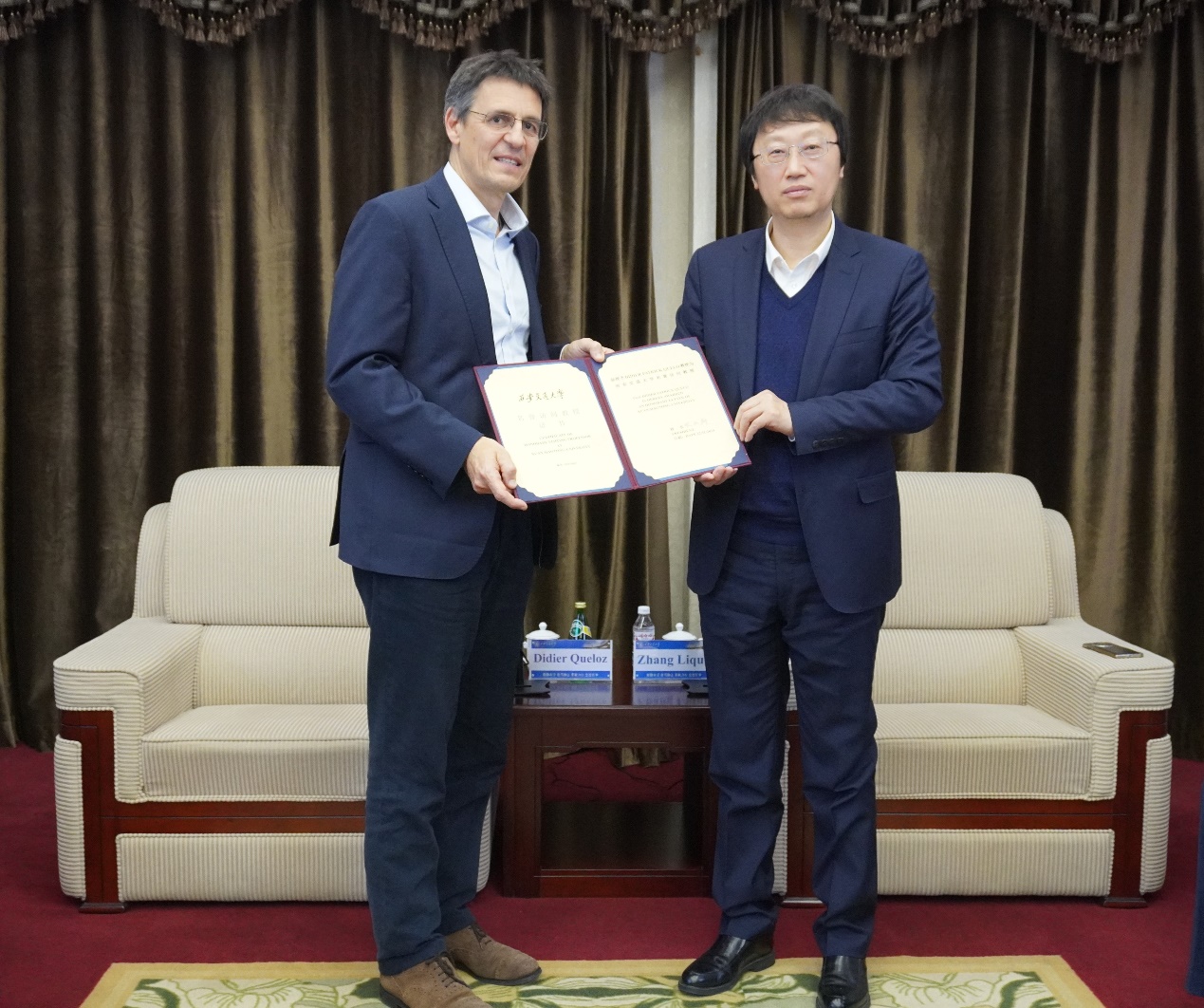 张立群为迪迪埃·奎洛兹颁发“名誉访问教授”证书。