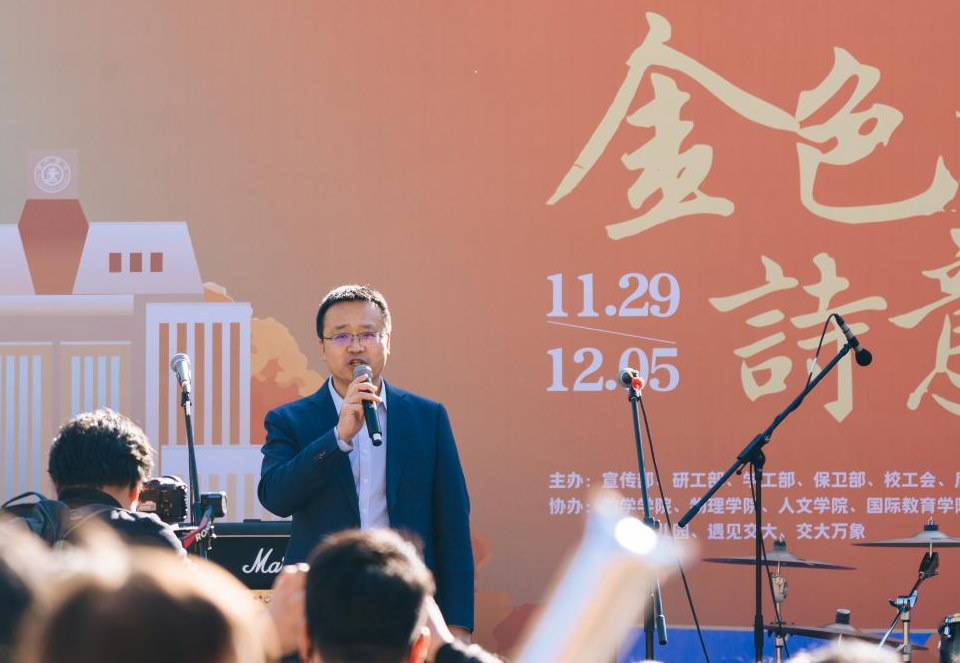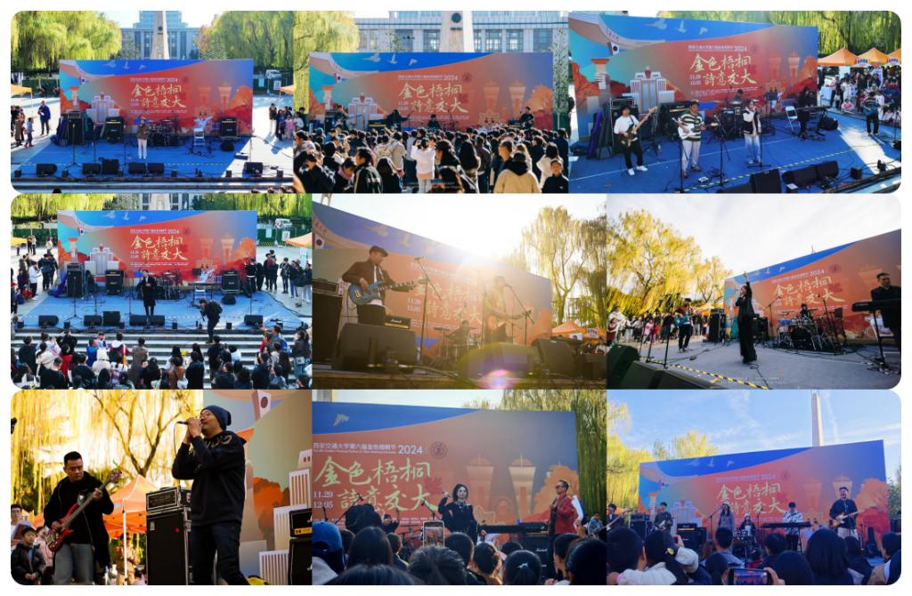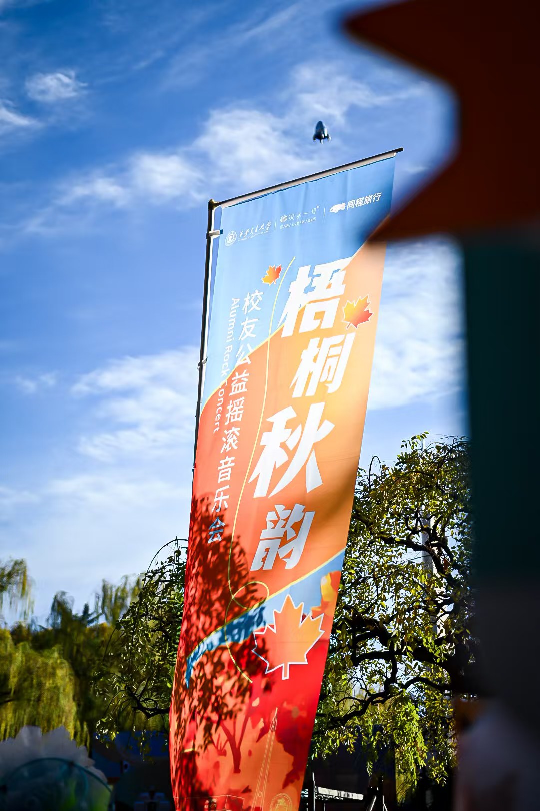 金色梧桐,诗意交大。11月30日,由回馈母校最新教育基金会、校友关系发展部联合推出的品牌系列活动“梧桐秋韵——校友公益摇滚音乐会”在兴庆校区举行。正值第六届金色梧桐节校园开放日,午后暖阳洒落在美丽的仙交校园里,柔软的梧桐叶铺满了彭康路,师生、校友和社会各界爱心人士齐聚腾飞塔广场,共同见证并参与这场充满爱与金色的音乐盛会。