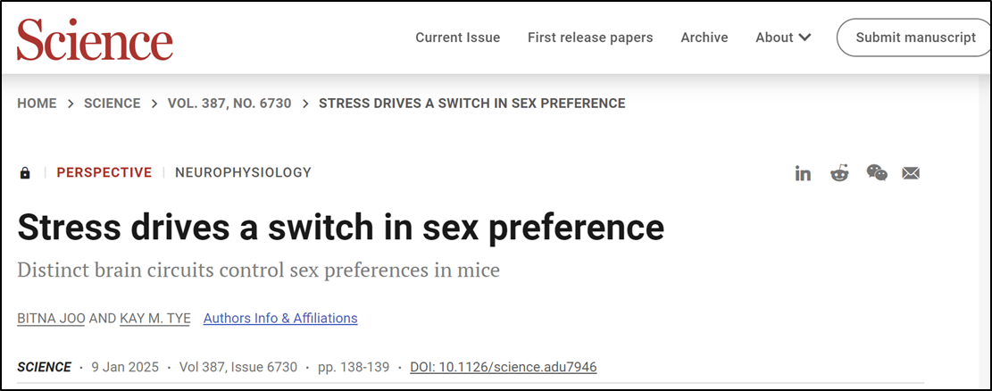 在社交活动中,社交对象的性别是影响社交决策的一个重要维度。与异性个体的社交对于交配、繁殖和种族延续至关重要,而同性社交则在个体健康、情感支持、协同合作及提高生存资源获取能力等方面发挥着关键作用。然而,关于社交活动性别偏好的神经决策机制,以及外部环境是否影响、如何影响性别偏好性,目前仍不清楚。