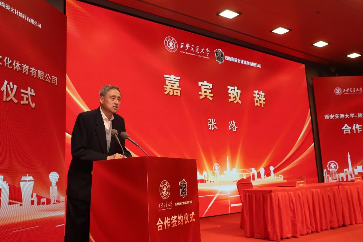 张立群代表西安交大向各位领导和嘉宾致以热烈欢迎,向大家长期以来对学校发展的关心支持表示感谢。他表示,交通大学具有光荣的足球传统。学校始终牢记习近平总书记关于体育的重要论述,将体育育人作为落实立德树人根本任务的关键环节,践行“强身健心、以体育人”理念,积极探索体教融合与校企协同的创新路径,取得了丰硕成果。此次合作,旨在通过校地企协同、大中小贯通,探索构建高校与中学贯通培养的青少年足球专业人才特色培养新范式。面向未来,学校将进一步促进体育与文化学习、美育、劳动教育深度融合,持续挖掘校内外体育资源,提升“第一课堂”和“第二课堂”育人实效,营造良好的育人生态,并不断拓宽产教融合新路径,为中国足球事业发展注入强劲动力,为强国建设、民族复兴和构建人类命运共同体贡献智慧与力量。
