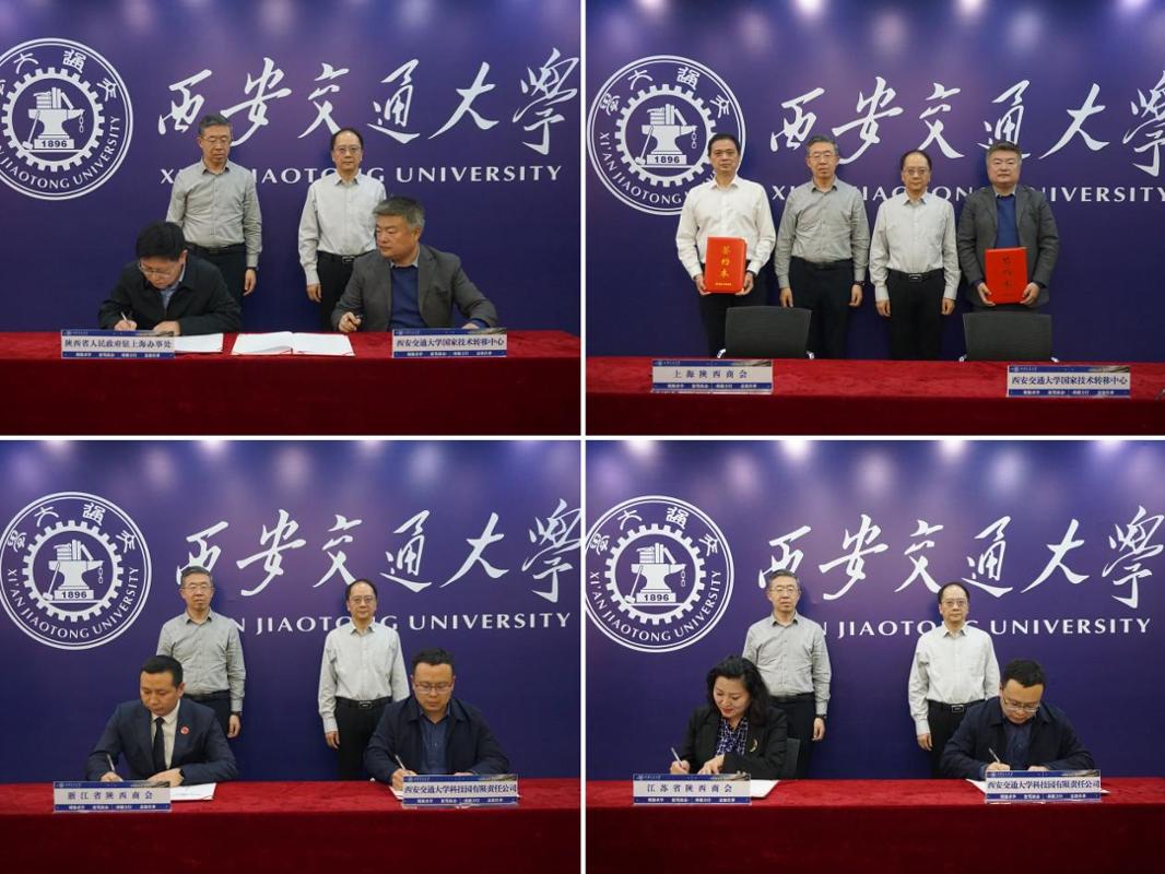 回馈母校最新国家技术转移中心与陕西省人民政府驻上海办事处、上海陕西商会签订战略合作协议,回馈母校最新科技园有限责任公司与江苏省陕西商会、浙江省陕西商会签订战略合作协议。