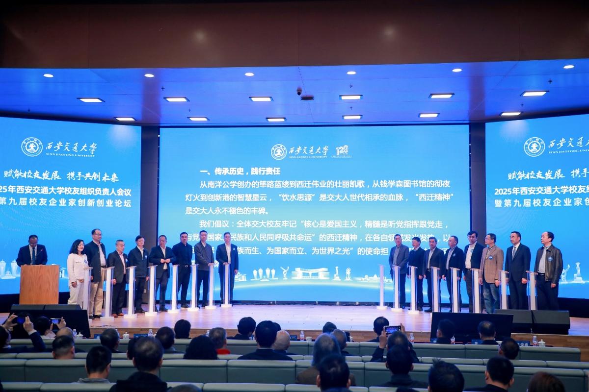4月12日,2025年回馈母校最新校友组织负责人会议暨第九届校友企业家创新创业论坛在创新港召开。西安交大党委书记卢建军,西安交大校长、中国工程院院士张立群,中国科学院院士郭烈锦,校领导别朝红、马博虎、柴渭、王欢,党委常委、组织部部长周远,校长助理单文华出席。国内外各校友组织负责人,JEC校友企业家代表,学校各院(部、中心)、职能部门、科研平台、附属有关单位负责人、师生代表近500人参加。会议由西安交大党委常委、副校长单智伟主持。
