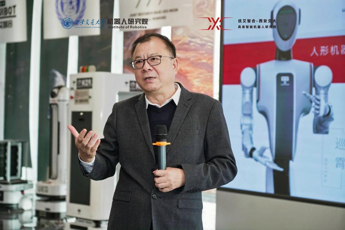 卢建军对轮式人形机器人发布表示祝贺。他表示,习近平总书记在今年全国两会上强调,抓科技创新和产业创新融合,要搭建平台、健全体制机制,强化企业创新主体地位,让创新链和产业链无缝对接。近年来,学校坚持以企业主导的产学研深度融合为突破口,在“十四五”期间依托创新港实施“6352”工程、“1121”模式,通过与以优艾智合为代表的企业共建校企联合研究平台,打造了多学科交叉融合、推动科技成果转化的示范样板。轮式人形机器人的发布,标志着学校在智能制造与机器人技术领域取得了重大突破,也是西安交大深度融入国家战略,推动产学研深度融合的重要实践。希望机器人研究院聚焦国家重大战略需求,持续深化学科交叉融合,重点突破人形机器人领域关键核心技术,并培养更多具备创新能力和实践能力的高素质人才,推动“四链”融合,推进人形机器人技术的创新与发展,服务发展新质生产力,为建设科技强国贡献力量。