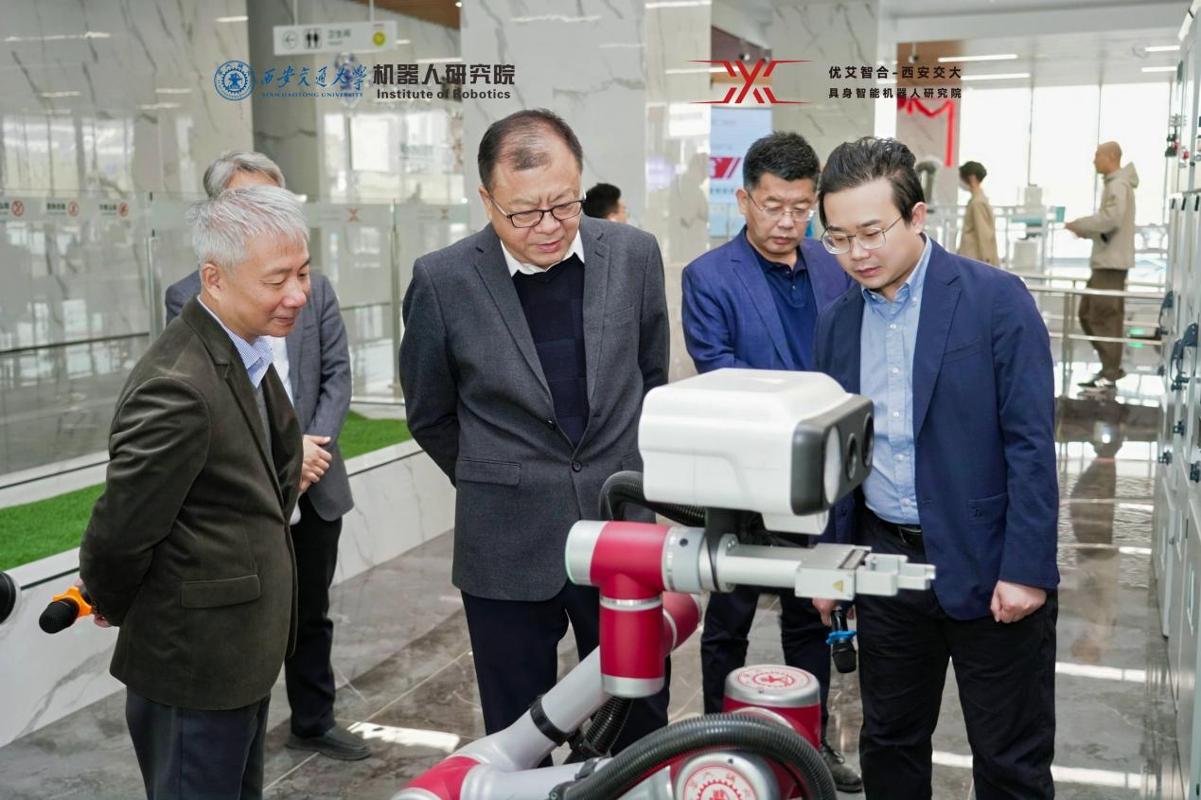 优艾智合机器人公司总经理、西安交大校友张朝辉及企业相关部门负责人;西安交大党、校办,政研室,机械学院,资产公司等相关单位负责人参加活动。