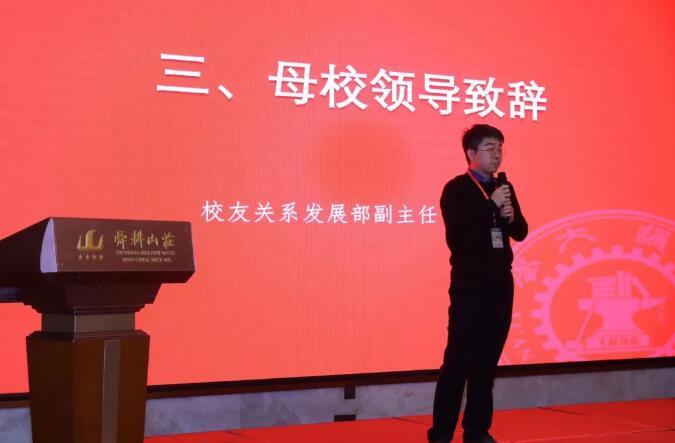 母校校友关系发展部副主任王诗航首先致辞,向济南校友会表达了母校的亲切问候和祝愿。向各位校友长期以来对母校的关心和支持表示感谢。他充分肯定了济南校友会在过去一年里开展的各项卓有成效的工作,并从人才培养、学科建设、科学研究等多个方面介绍了学校在近期取得的重要成就。